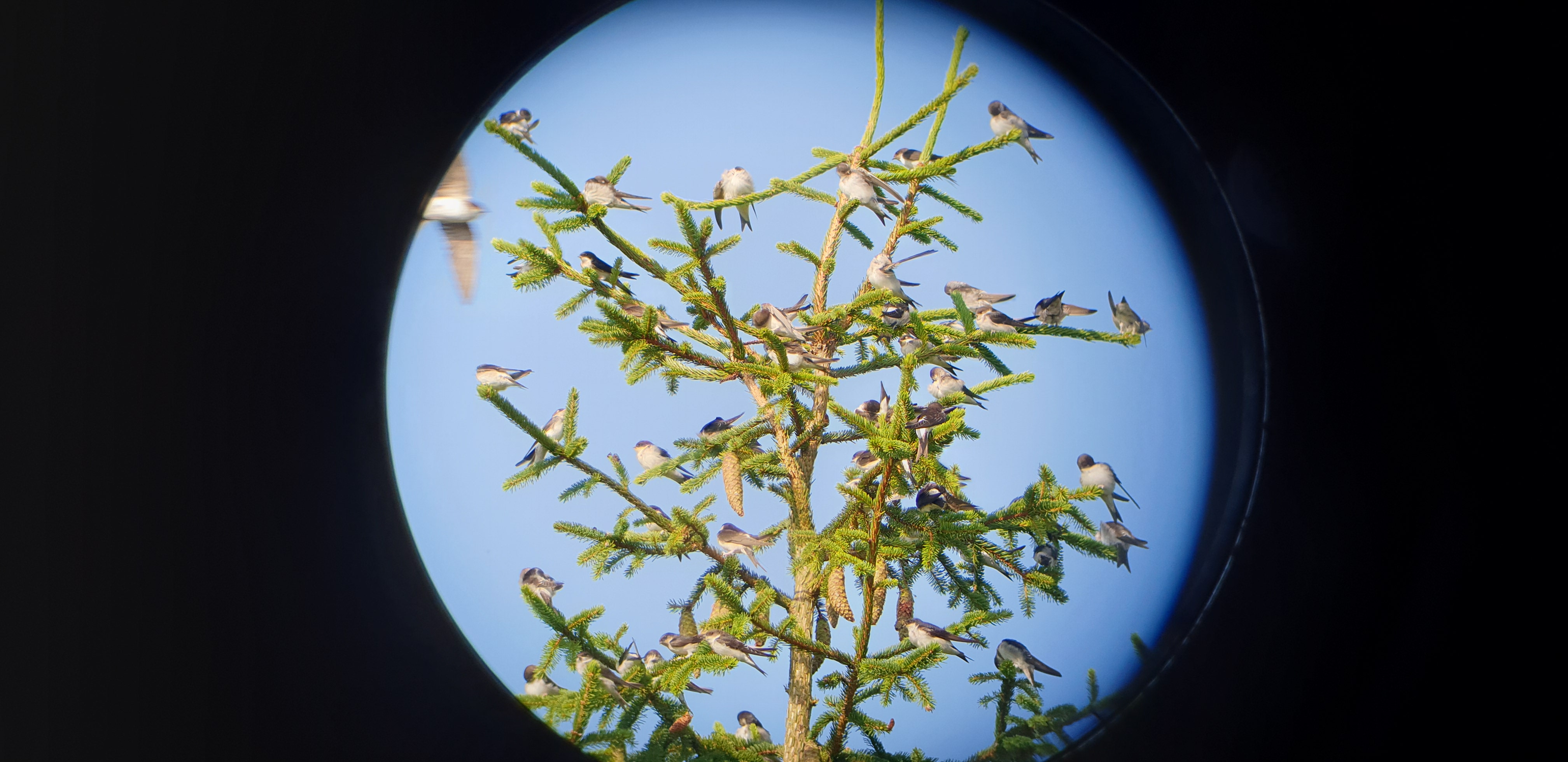 As we wandered further up onto the hill, we were greeted with a host of Swallows, with parent birds still feeding young in some of the smaller trees in the area. Being so close to them gave some great views of the behaviour. A handful of Willow Warblers and a couple of small, noisy, flocks of Linnet made themselves known towards the top of the hill, and a family of Stonechats including a couple of juvenile birds.